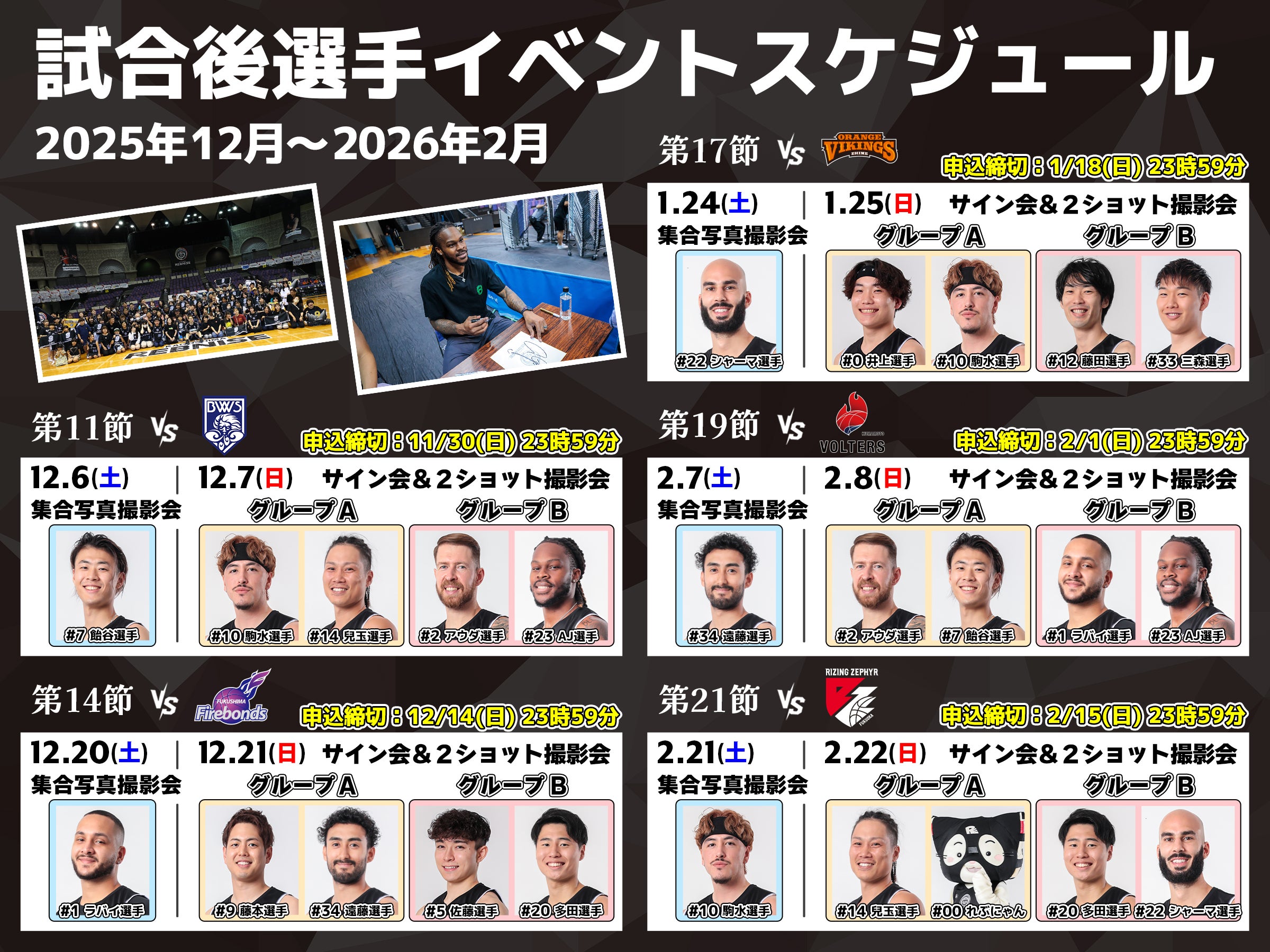 ・試合終了後のケアやミーティングなどでイベント開始が遅くなる場合がございます。予めご了承ください。