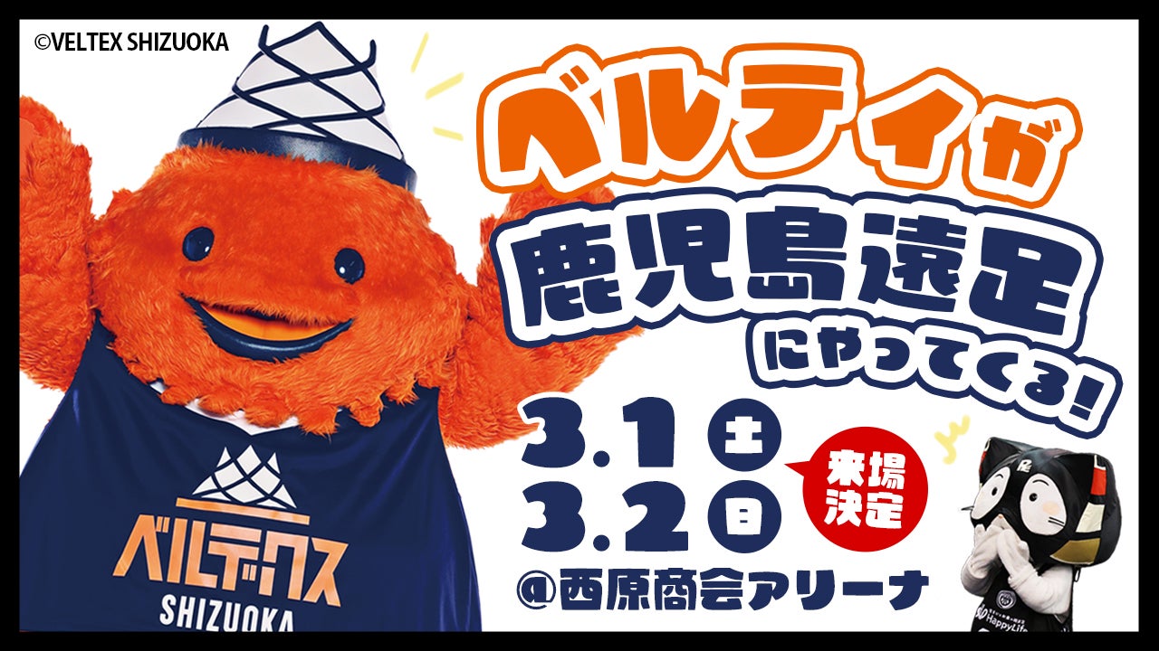 西地区でシーズン当初より順位争いを繰り広げる静岡との対戦。プレーオフのホーム開催権にも大きく影響することから二連勝あるのみ。10月の「神くん」に続いて「ベルティ」の来場も決定!盛り上がる一戦。コートで戦う選手と共にブースターがアリーナで戦う!