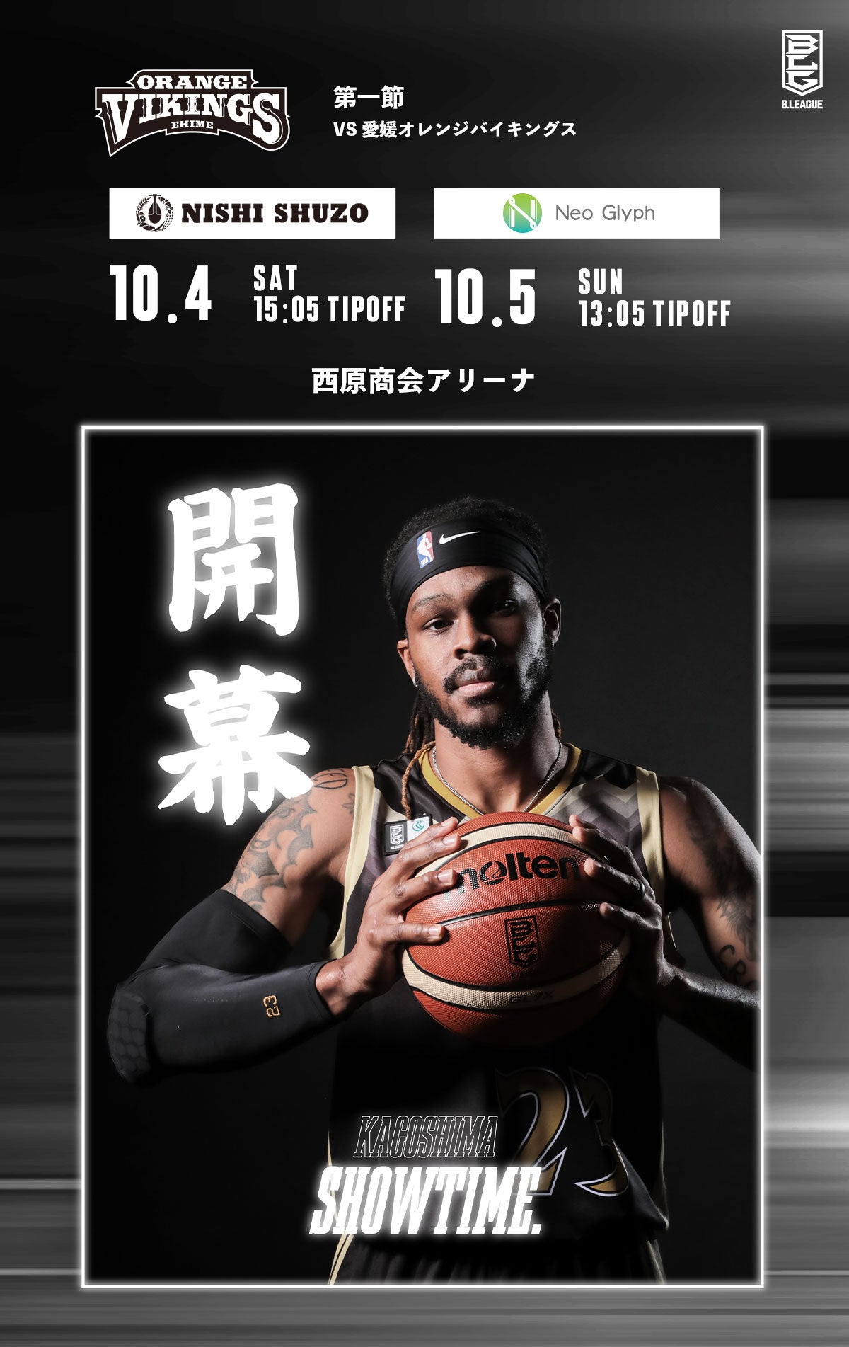 2025-26の新シーズンも西原商会アリーナからレブナイズの熱戦が始まる。このオフにインサイド選手を次々に獲得し、また、その一方で多田、遠藤と日本人スコアラーを補強したレブナイズ。対するは、昨シーズン共にシーズンを戦ったマヌエル、マット・ハームスを擁する愛媛オレンジバイキングス。黒の会場がオレンジの波を飲み込む!