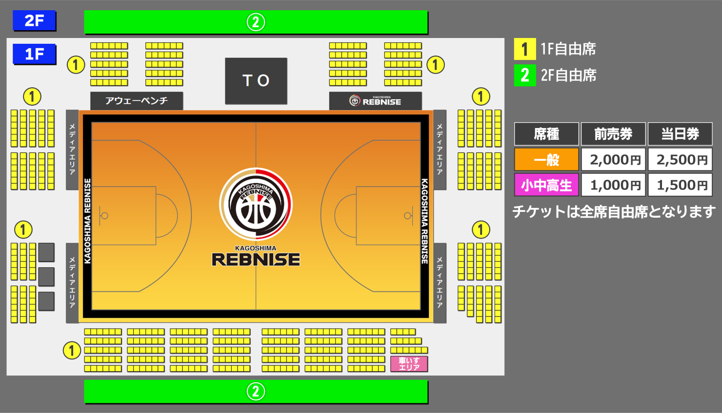1F・2F自由席(一般) | 2,000円 | 2,500円 |