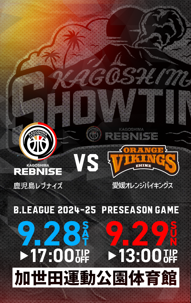 加世田運動公園体育館にて、かつての盟友愛媛を迎えてのプレシーズンゲームが開催決定。 開幕を目前に控えたこの試合、シーズンを占う試金石として大事な一戦となる。 アリーナに集まったRebsの熱いエナジーが開幕戦へ向けて、選手たちの強い後押しとなる!