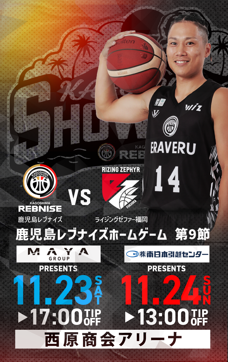 開幕では辛勝ながら二連勝というスタートを迎えた対戦相手、ライジングゼファー福岡を迎えての早くもの再戦。およそ一か月半の時間が経ち、両チームの完成度は高まり、見ごたえは十分だ。前回の対戦では、両日で約5,500人の熱狂の渦が西原商会アリーナを包んだ。今度は6,000人を超える熱狂が西原商会アリーナを包むとともに、鹿児島レブナイズが九州を代表するチームになるべく、新たな一歩を踏み出す!