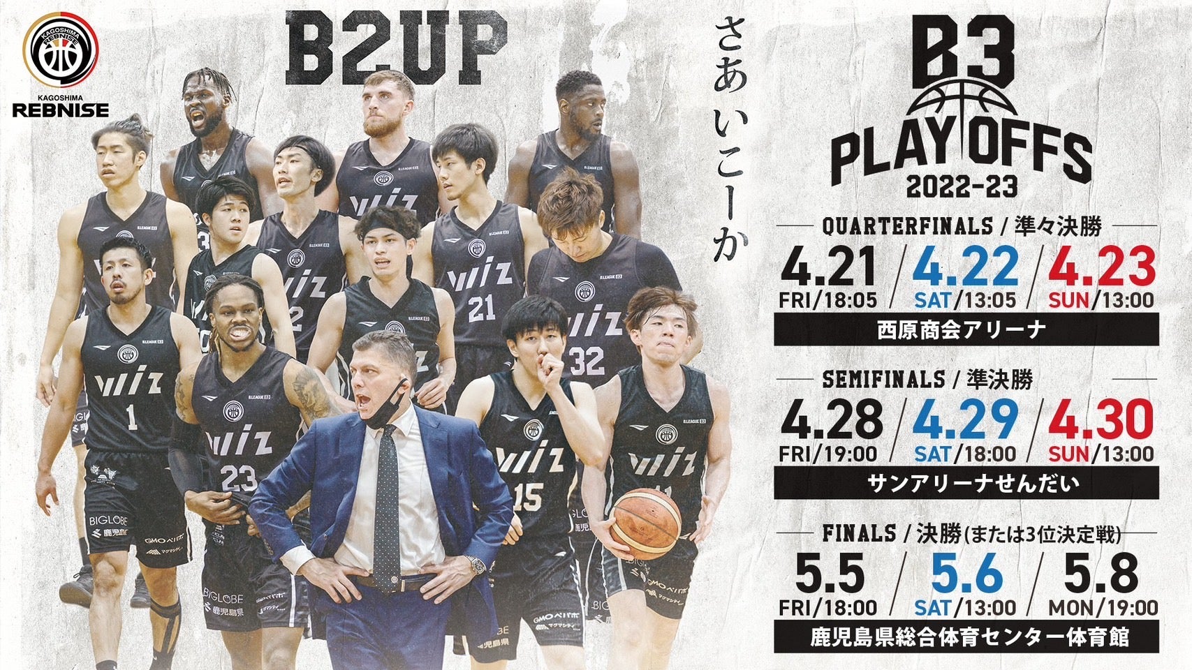 「B3 PLAYOFFS QUARTERFINALS 2022-23」 4月22日(土)KKB鹿児島放送にて地上波放送決定及び試合時間変更のお知らせ