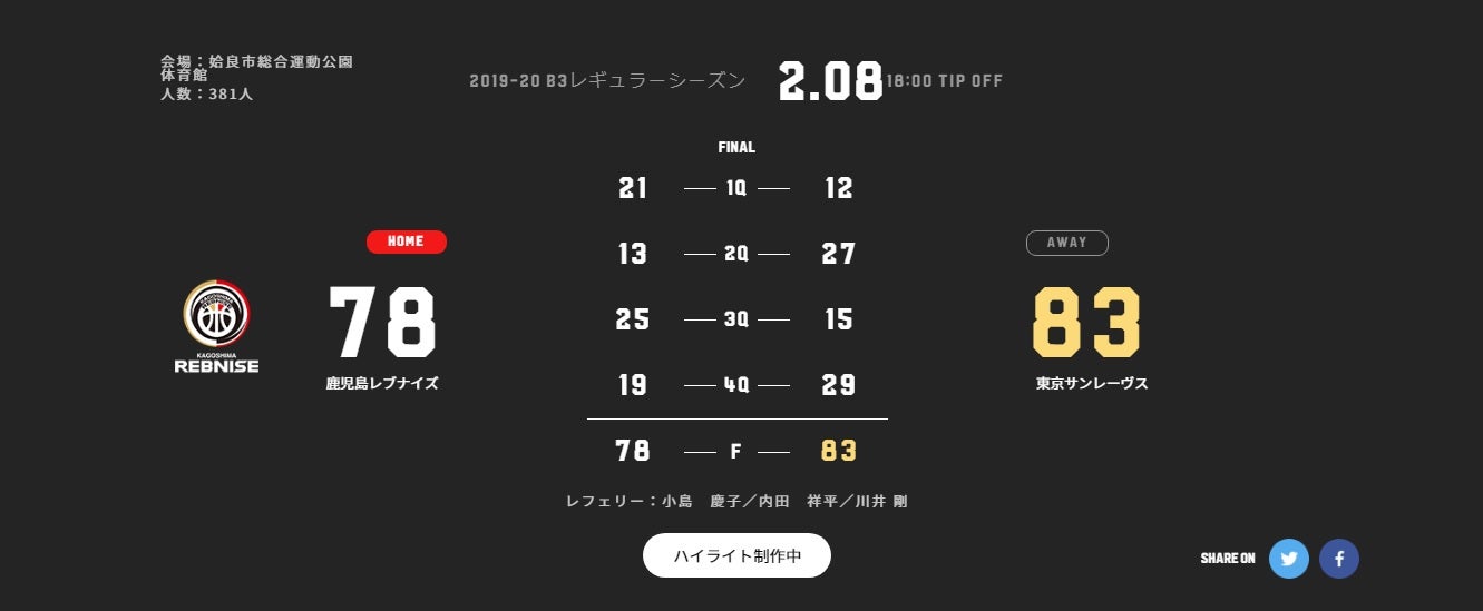 10/20(土)ファーストステージ第4節 vs 埼玉ブロンコス 試合結果
