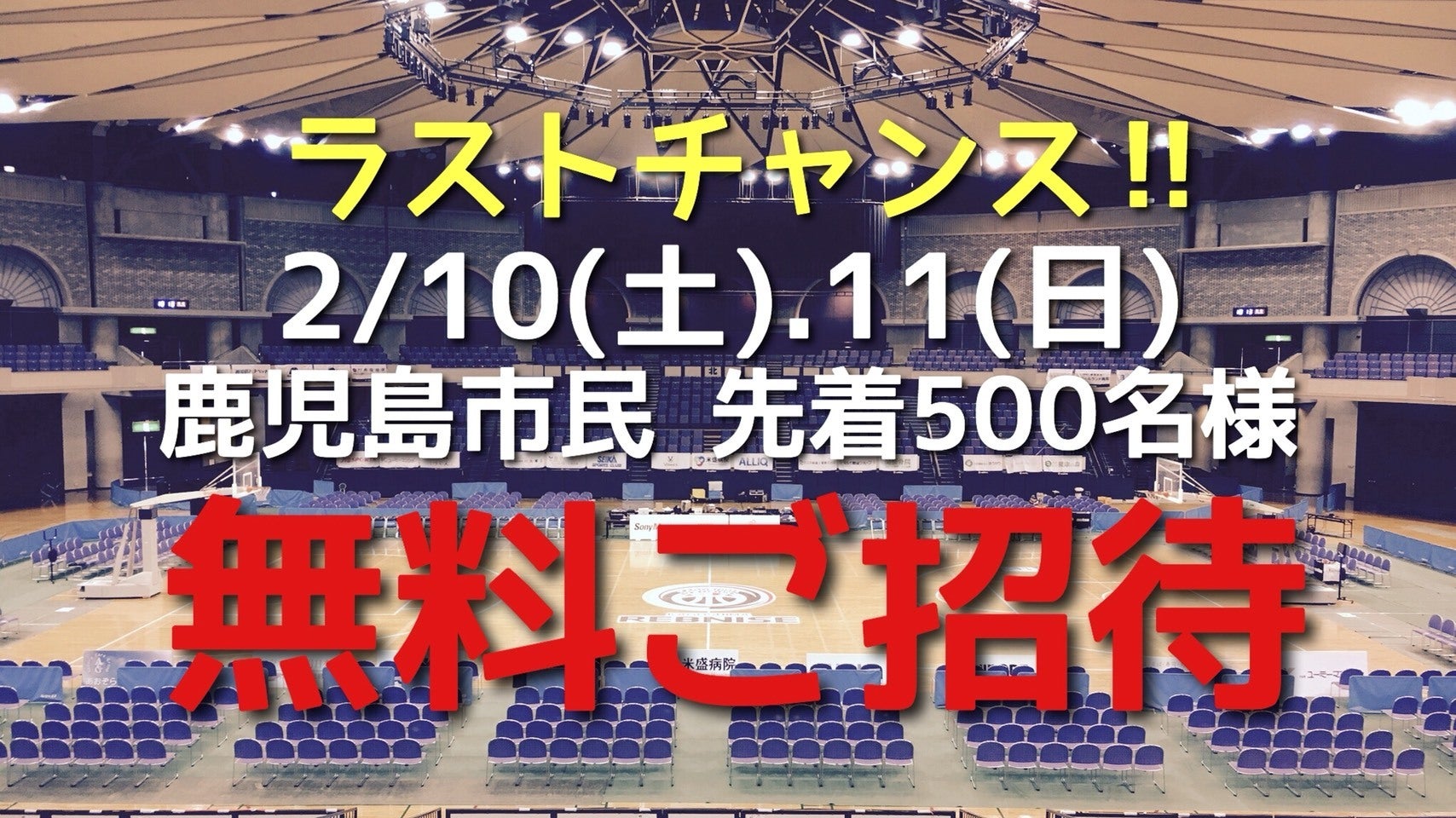 2月10日(土)、11日(日) 鹿児島市民対象 先着500名様 無料招待のお知らせ