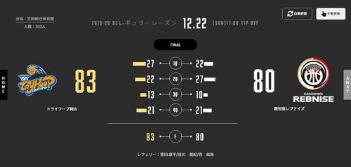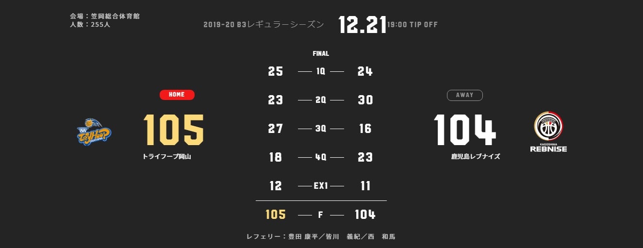 12/21(土) 第13節 vsトライフープ岡山 試合結果