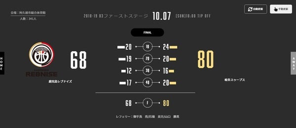 10/7 (日)ファーストステージ第2節 vs 岐阜スゥープス 試合結果