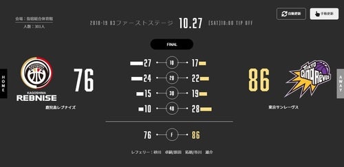 10/27(土)ファーストステージ第5節 vs 東京サンレーヴス 試合結果