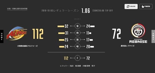 1/6(日)レギュラーシーズン 第8節 vs大塚商会越谷アルファーズ 試合結果