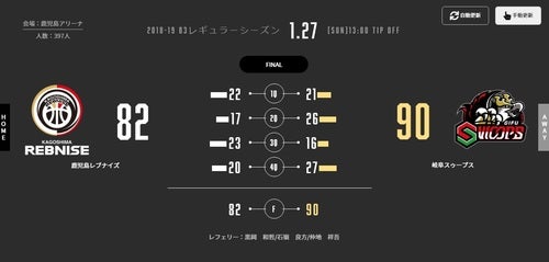 1/27(日)レギュラーシーズン 第11節 vs岐阜スゥープス 試合結果