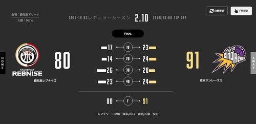 本日(2/10)ホームアリーナである鹿児島アリーナで東京サンレーヴスと対戦いたしました。