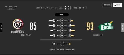 2/21(木)レギュラーシーズン 第15節 vs 東京エクセレンス 試合結果