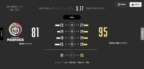本日(3/17)鹿児島アリーナで東京海上日動ビッグブルーと対戦いたしました。