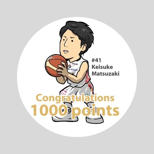 #41松崎圭介 選手のプロ通算1000得点達成を記念して、今節(4/13.14)よりぽたろさんデザインの記念缶バッチを発売いたします!
