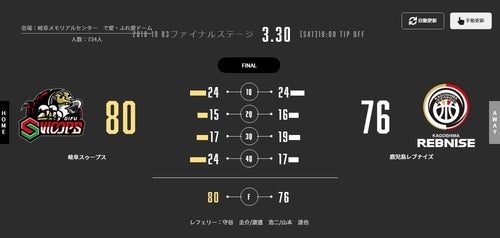 3/30(土)ファイナルステージ開幕(第2節)vs 岐阜スゥープス 試合結果
