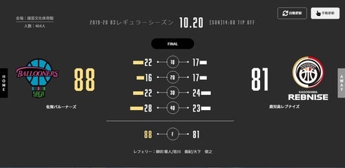 10/20(日) AWAY第5節 vs 佐賀バルーナーズ 試合結果