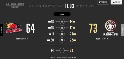 WIN!WIN!WIN!11/3(日) AWAY第7節 vs 岩手ビッグブルズ 試合結果