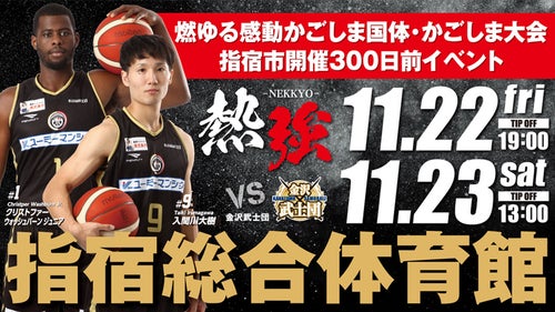 11月22日(金)、23日(土)は協定を結んでいる指宿市の指宿総合体育館で元B2の金沢武士団と対戦いたします。