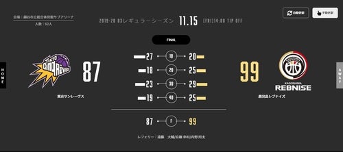 本日(11/15)AWAY越谷市立総合体育館サブアリーナで東京サンレーヴスと対戦いたしました。