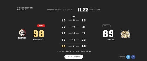 WIN!WIN!WIN!11/22(金) 第10節 vs 金沢武士団 試合結果