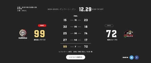 「フラストレーションが溜まる試合が続いていた中で、課題である失点を72点に、そして攻撃は100点近くとれたことは、完勝と言っていいゲームではないかと思う。ただ、まだまだ“強い鹿児島レブナイズ”をつくっていくためには、もっとチームとしてのケミストリーをつくっていかなければならない。」