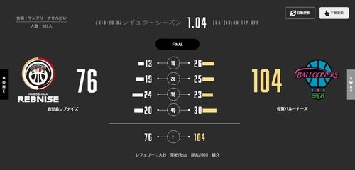 1/4(土) 第15節 vs佐賀バルーナーズ 試合結果
