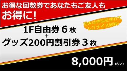 1F自由席6枚 +グッズ200円割引券3枚ついて『8,000円』!!!