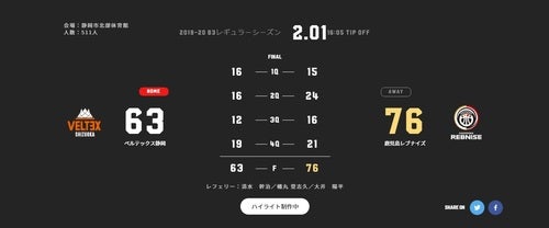 WIN!WIN!WIN!3連勝! 2/1(土) 第18節 vsベルテックス静岡 試合結果