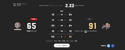 本日(2/22)鹿児島アリーナでアイシン・エィ・ダブリュ アレイオンズ安城と対戦いたしました。
