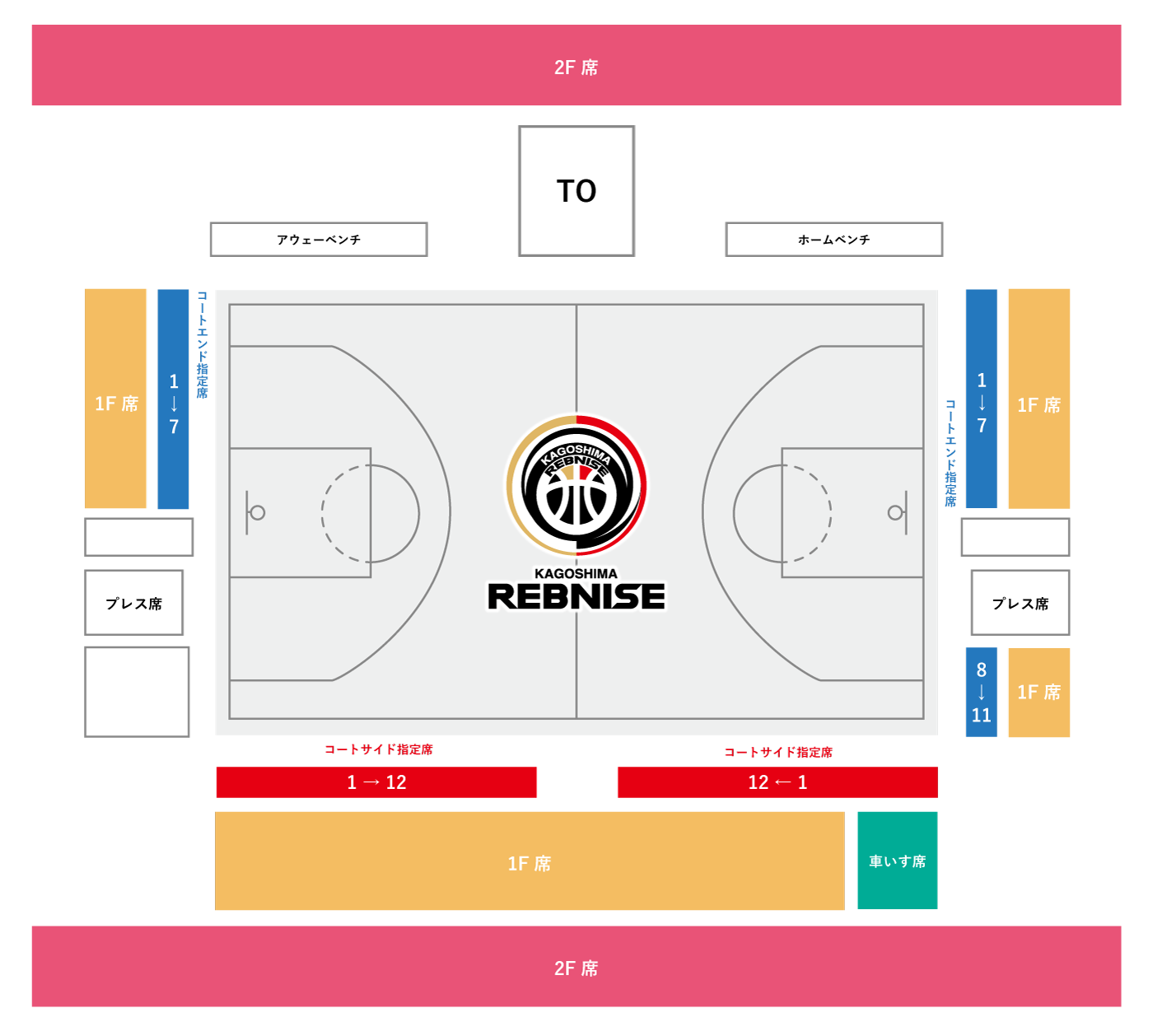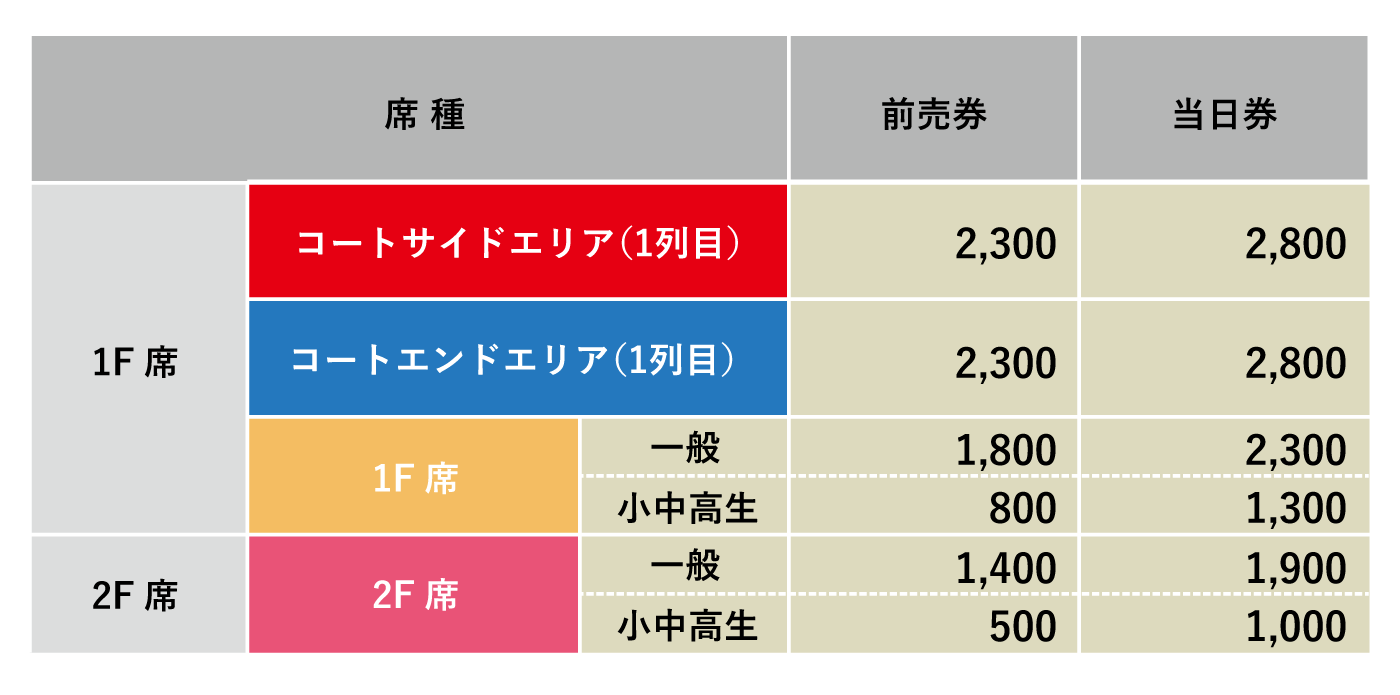 ・コートサイドエリア(1列目):コートにもっとも近い席