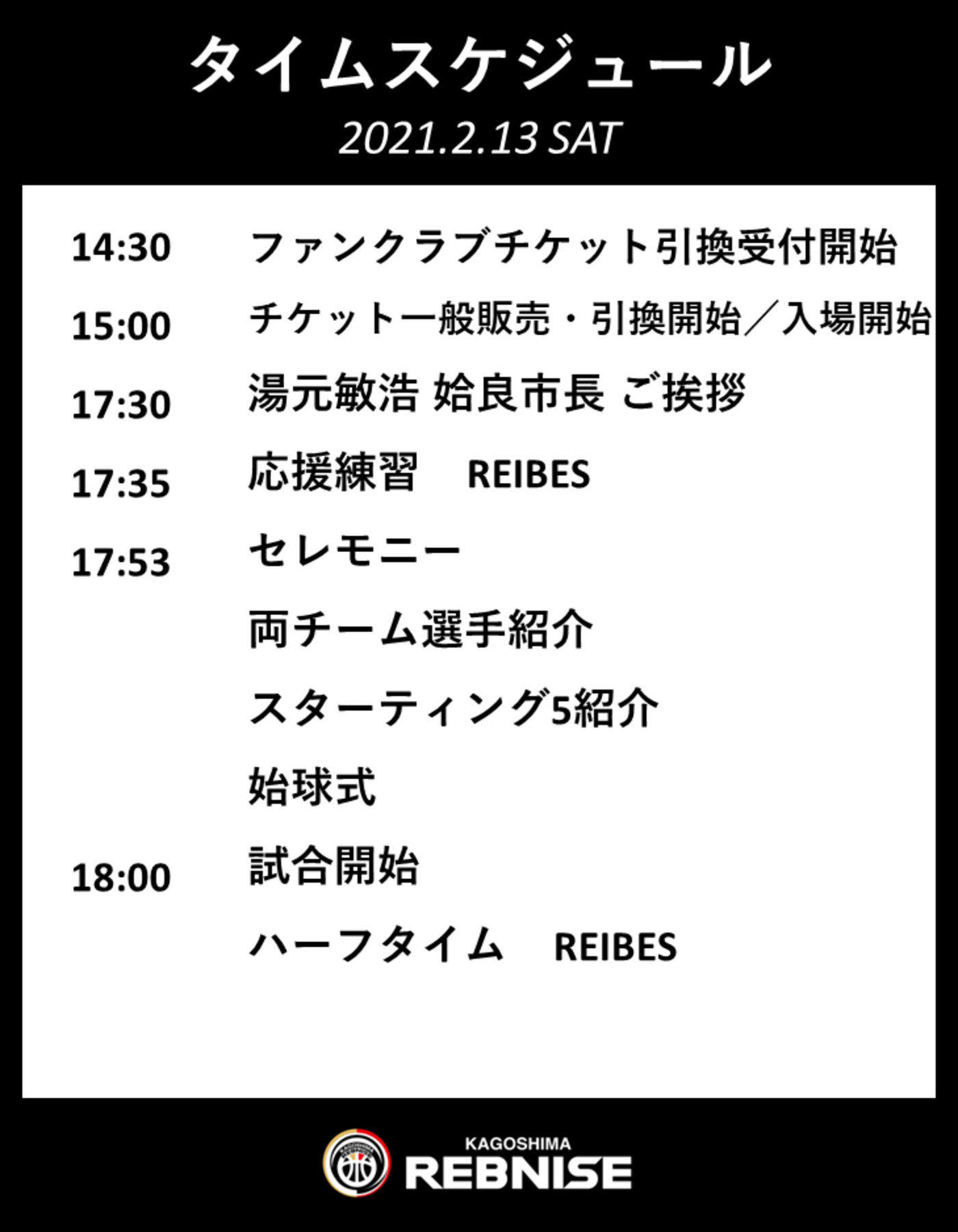 2月13日(土)試合開始 18:00/開場 15:00(★ファンクラブチケット引換受付 14:30)