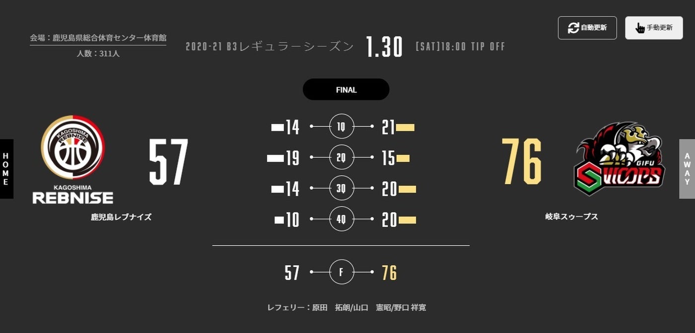 本日(1/30)、B3リーグ 2020-21シーズン ホーム開幕戦 第4節 鹿児島県総合体育センター体育館で岐阜スゥープスと対戦いたしました。