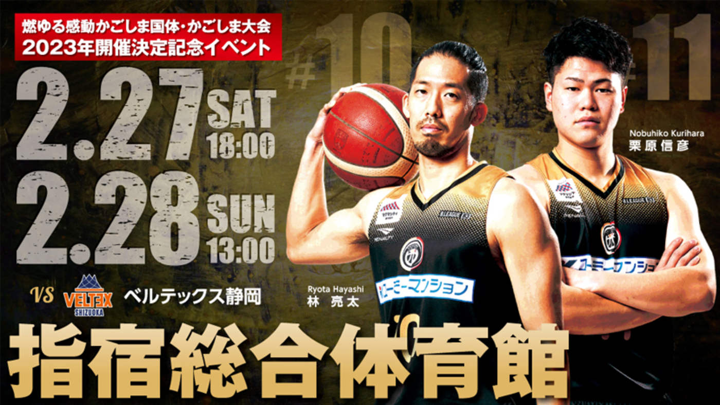 第1戦目は、2月27日(土)・28日(日)地域活性化に関する連携協定を結んでいる指宿市の指宿総合体育館でベルテックス静岡と対戦いたします。