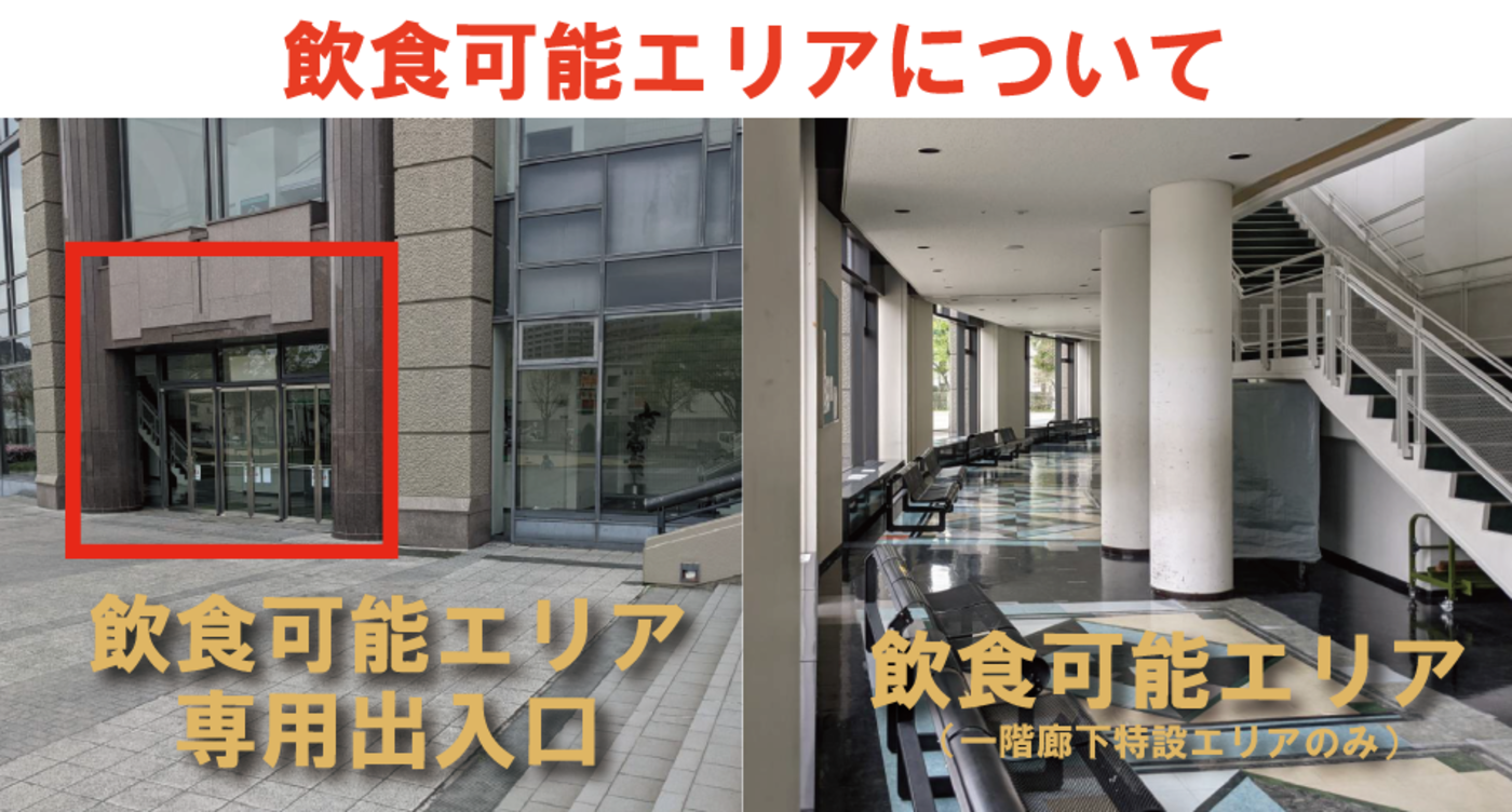 感染症対策を行い、館内では以下エリアのみ飲食可能となります。