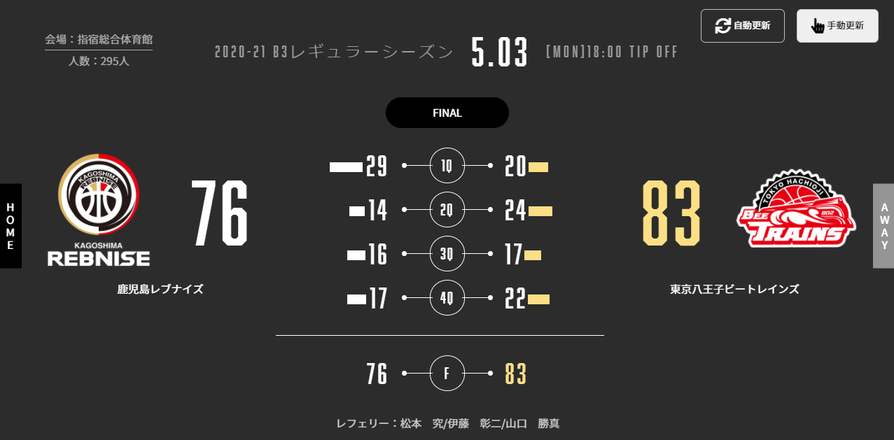 本日(5/3)、B3リーグ 2020-21シーズン 第18節 指宿総合体育館で東京八王子ビートレインズと対戦いたしました。