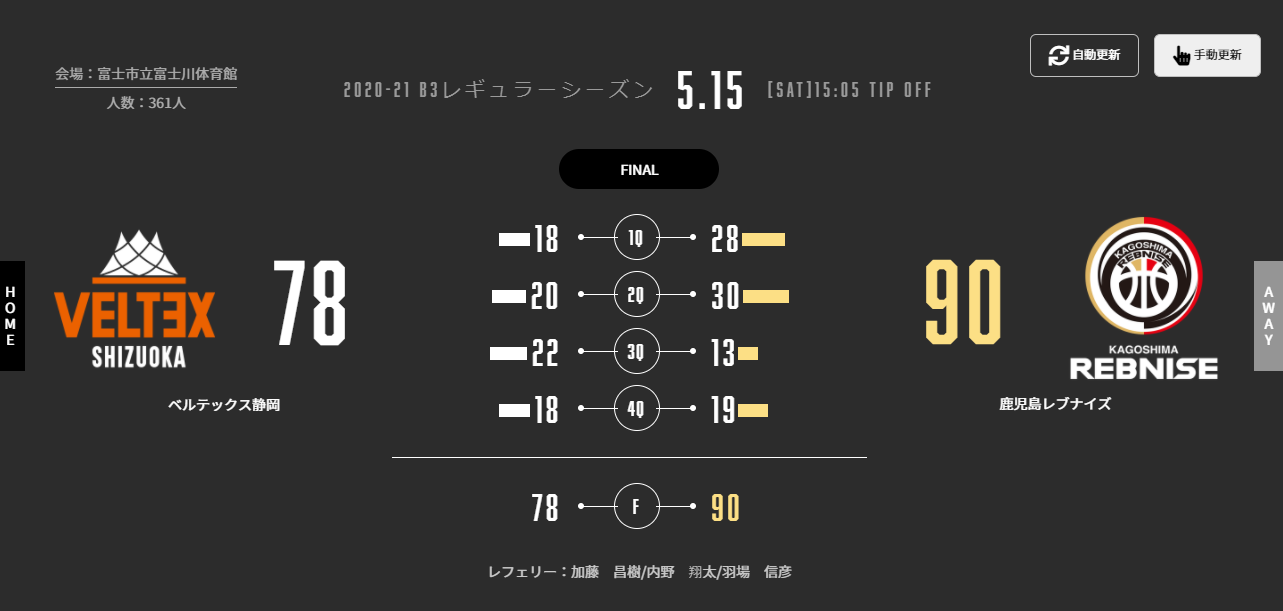 WIN!WIN!WIN!5/15(土) 第20節 vsベルテックス静岡 試合結果