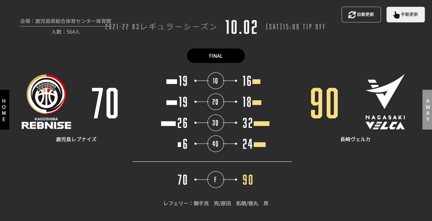 10/2(土)第1節 vs長崎ヴェルカ 試合結果