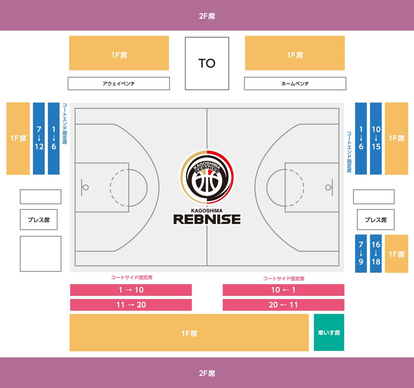 ・コートエンドエリア(1・2列目):ゴールにもっとも近い席
