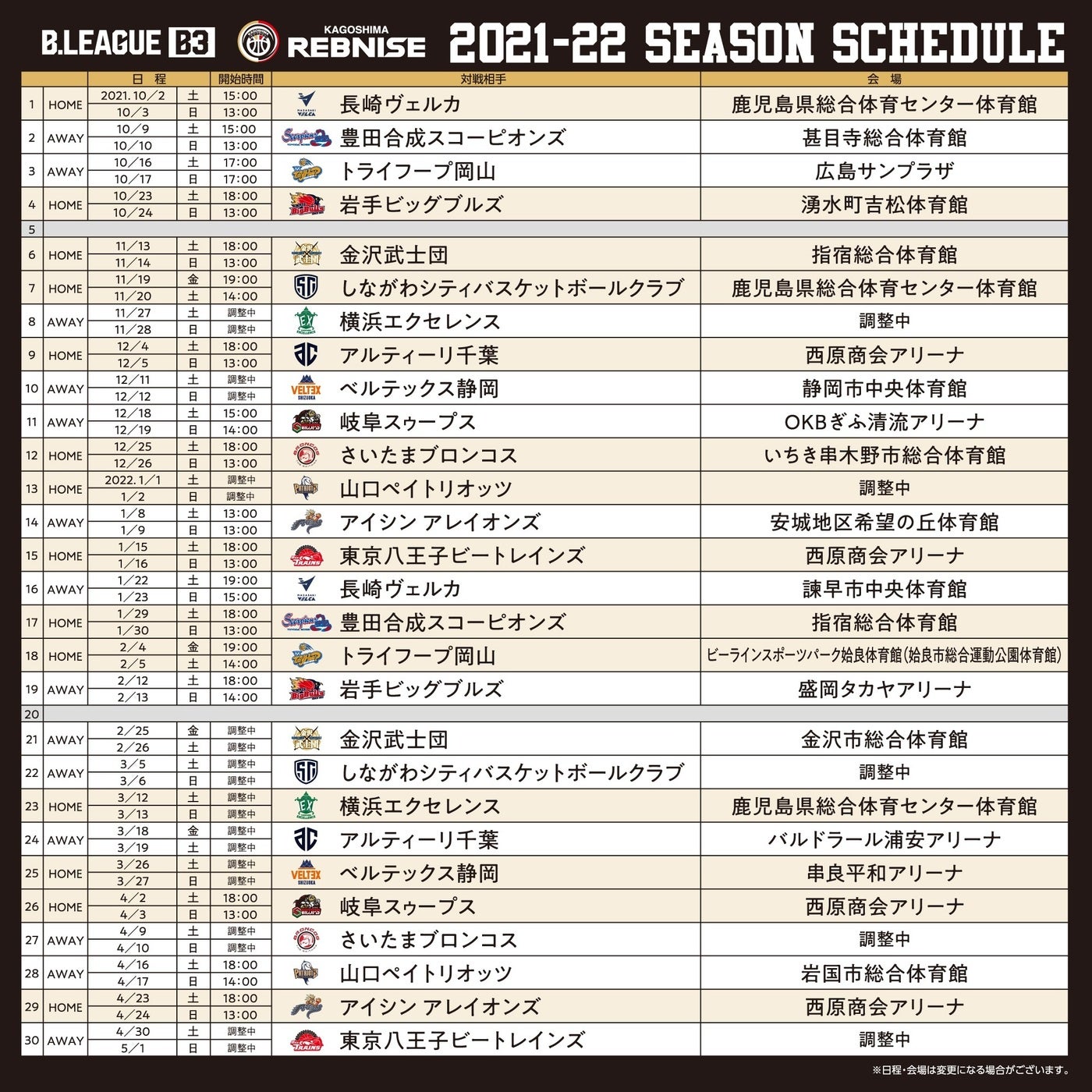 鹿児島レブナイズ 2021-22シーズン 試合日程