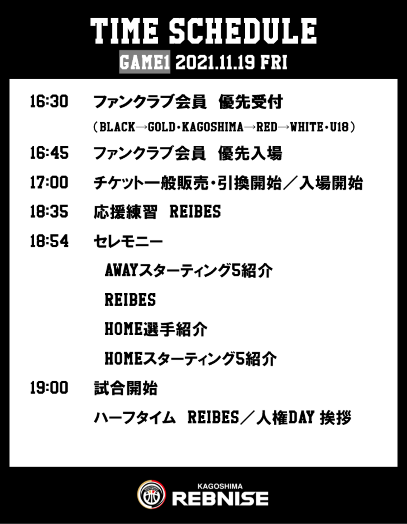 11月19日(金)開場~試合終了まで