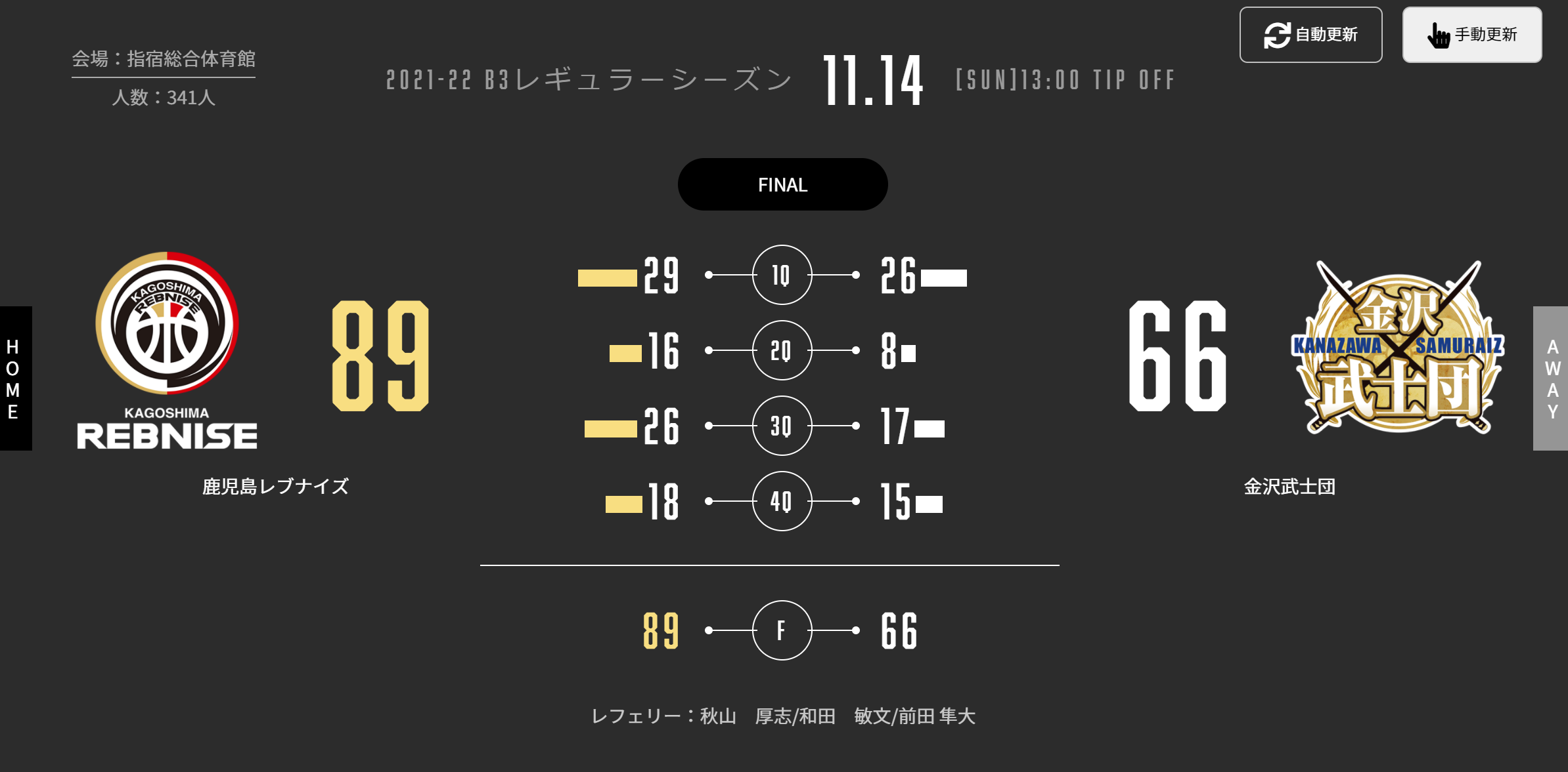 2021-22シーズン 第6節 GAME2 ※2連勝