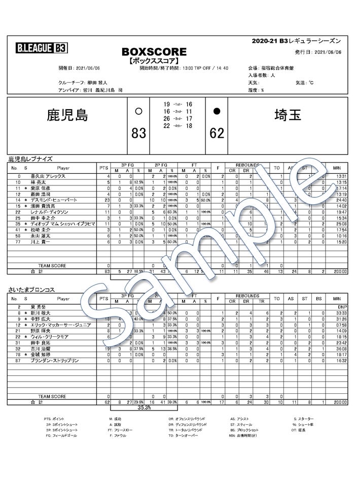 試合終了後にインクフリー様ブースでボックススコアを配布します。