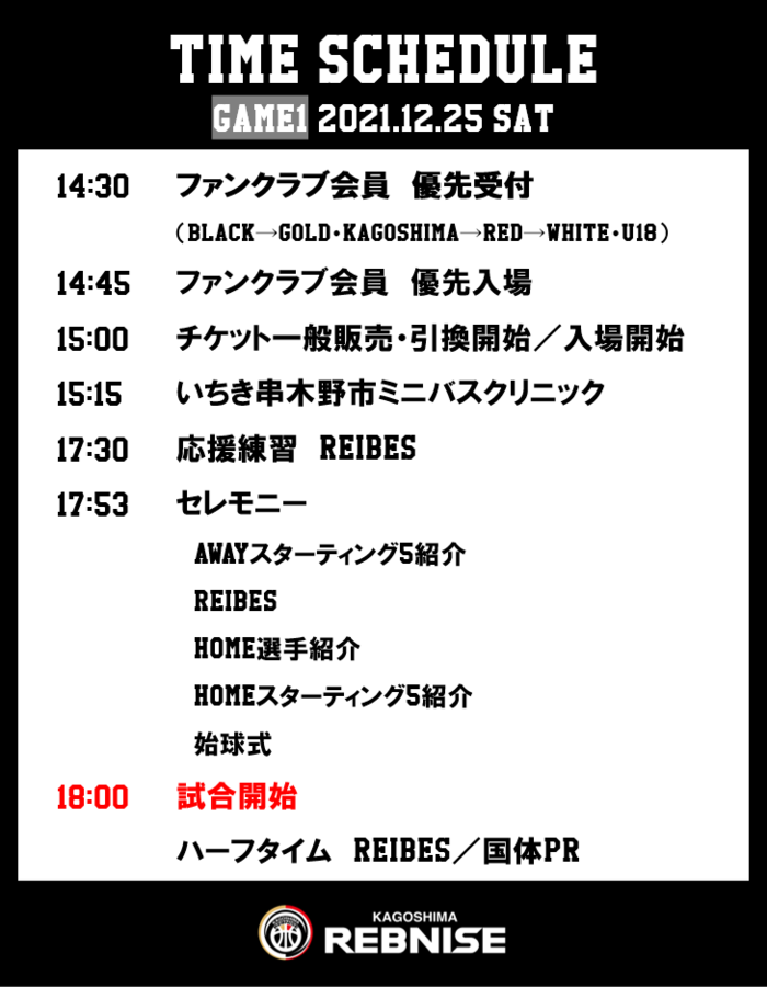 クリスマスゲームとなる12月25日(土)、26日(日)は、燃ゆる感動かごしま国体・かごしま大会いちき串木野市開催PR記念大会として、今季初のいちき串木野市総合体育館でさいたまブロンコスと対戦します。