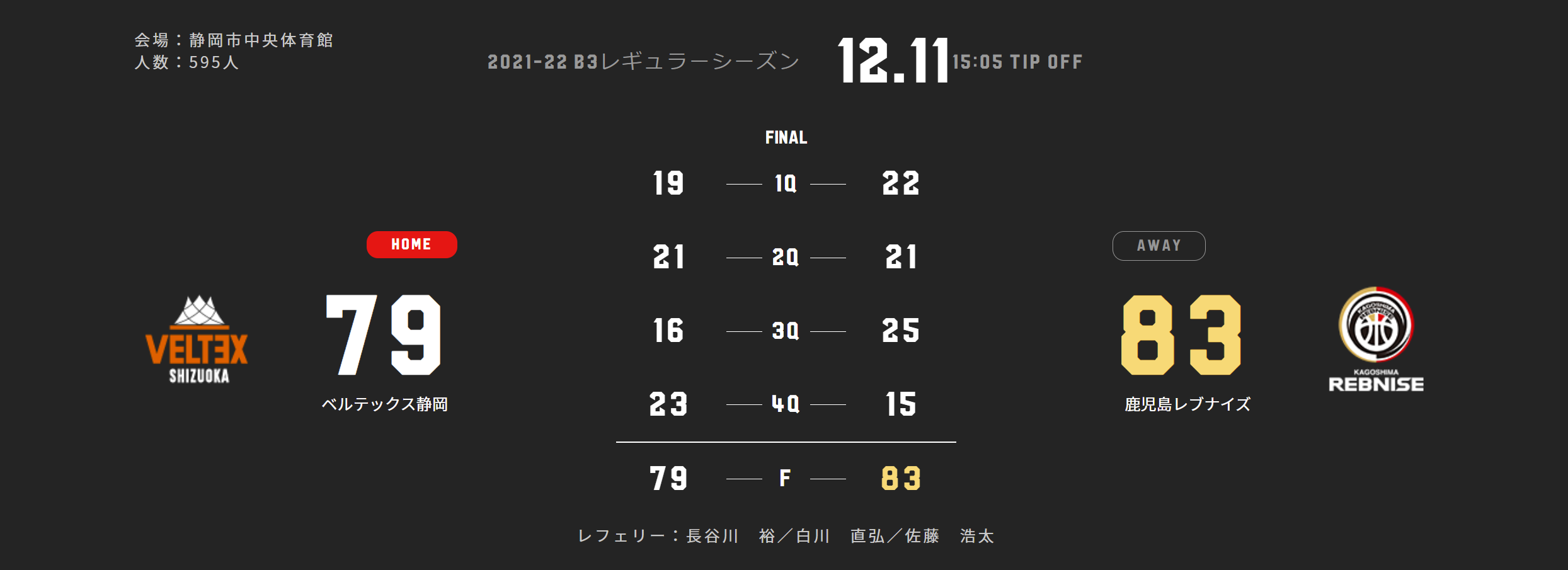 本日(12/11)、B3リーグ 2021-22シーズン 第10節 アウェー静岡市中央体育館でベルテックス静岡と対戦いたしました。