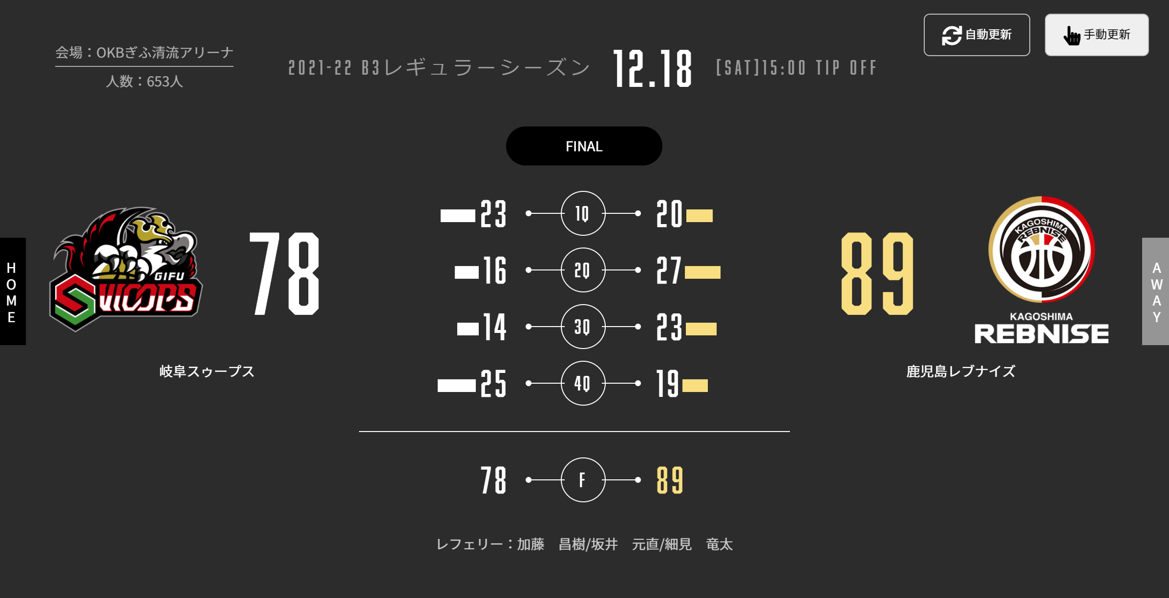 本日(12/18)、B3リーグ 2021-22シーズン 第11節 アウェーOKBぎふ清流アリーナで岐阜スゥープスと対戦いたしました。