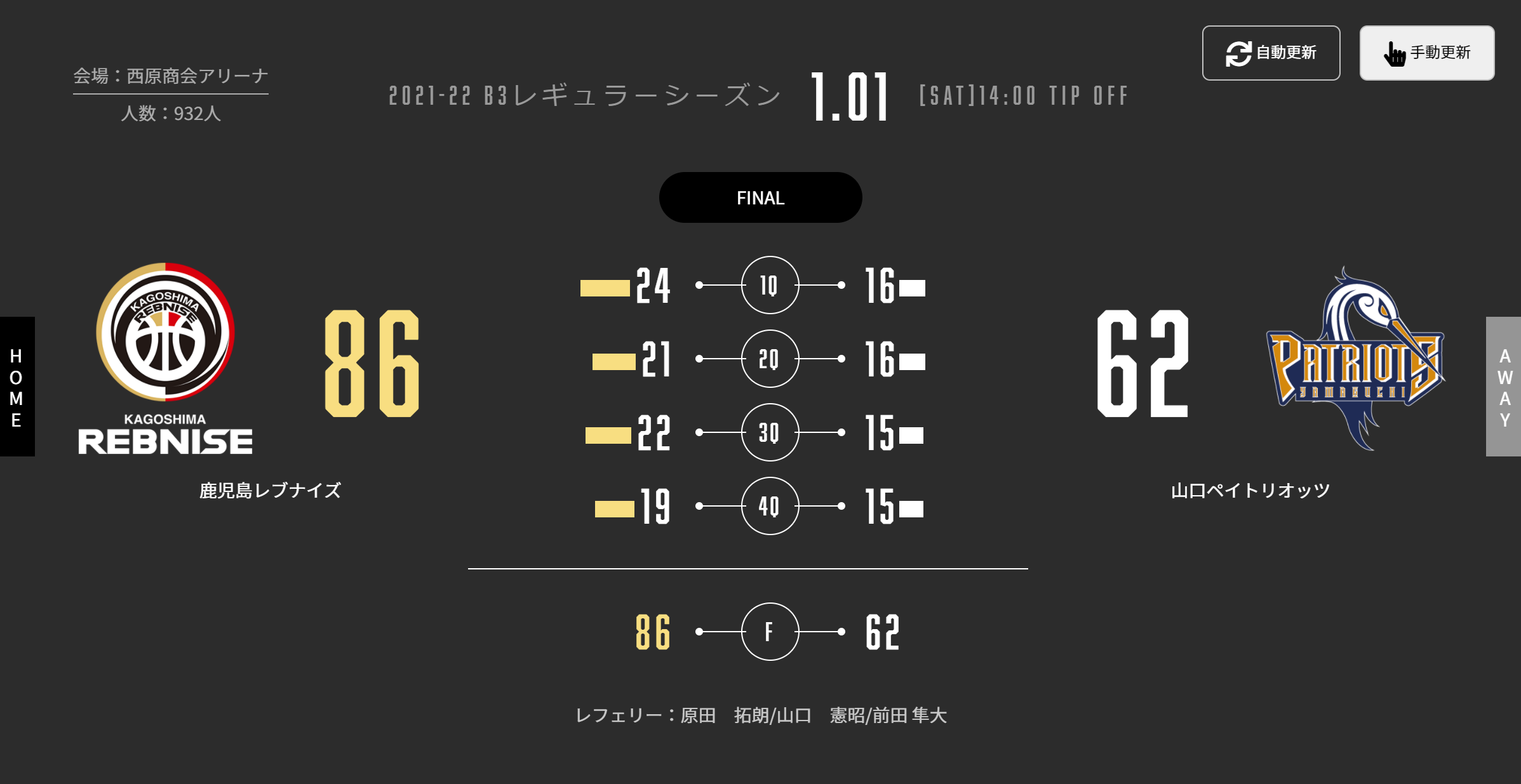 本日(1/1)、B3リーグ 2021-22シーズン 第13節 西原商会アリーナで山口ペイトリオッツと対戦いたしました。
