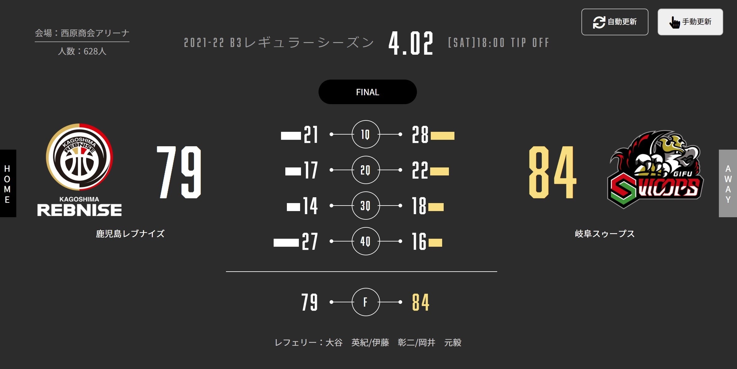 本日(4/2)、B3リーグ 2021-22シーズン 第26節 西原商会アリーナで岐阜スゥープスと対戦いたしました。