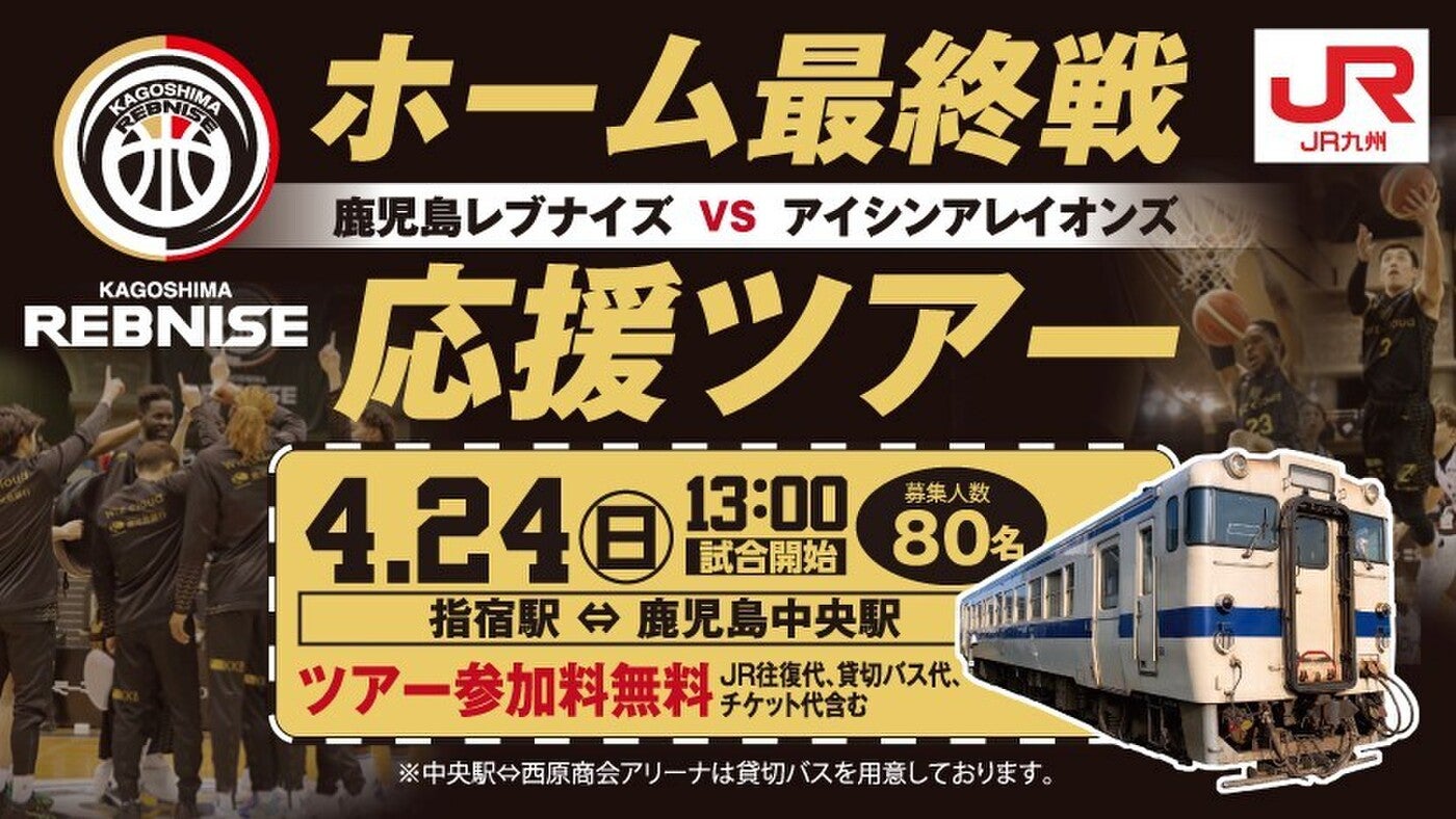 この度、鹿児島レブナイズでは、4月24日(日)のホーム最終戦に合わせて『鹿児島レブナイズ応援ツアー』を実施することとなりましたのでお知らせいたします。