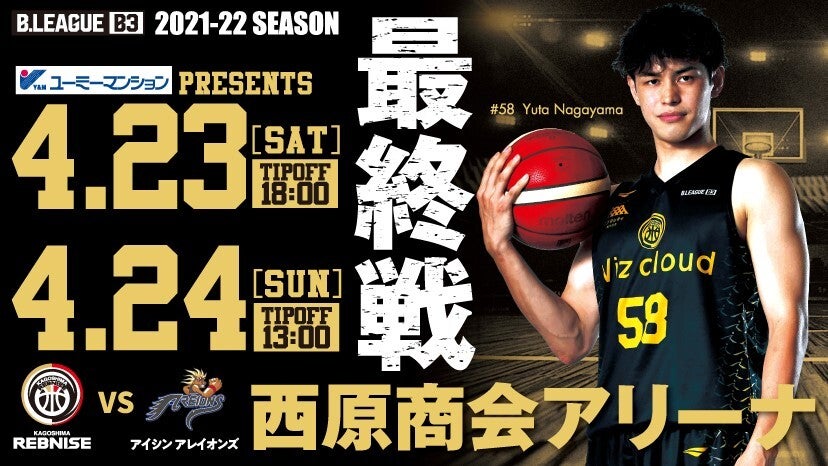 本日(4/23)、B3リーグ 2021-22シーズン 第29節 西原商会アリーナでアイシンアレイオンズと対戦いたしました。