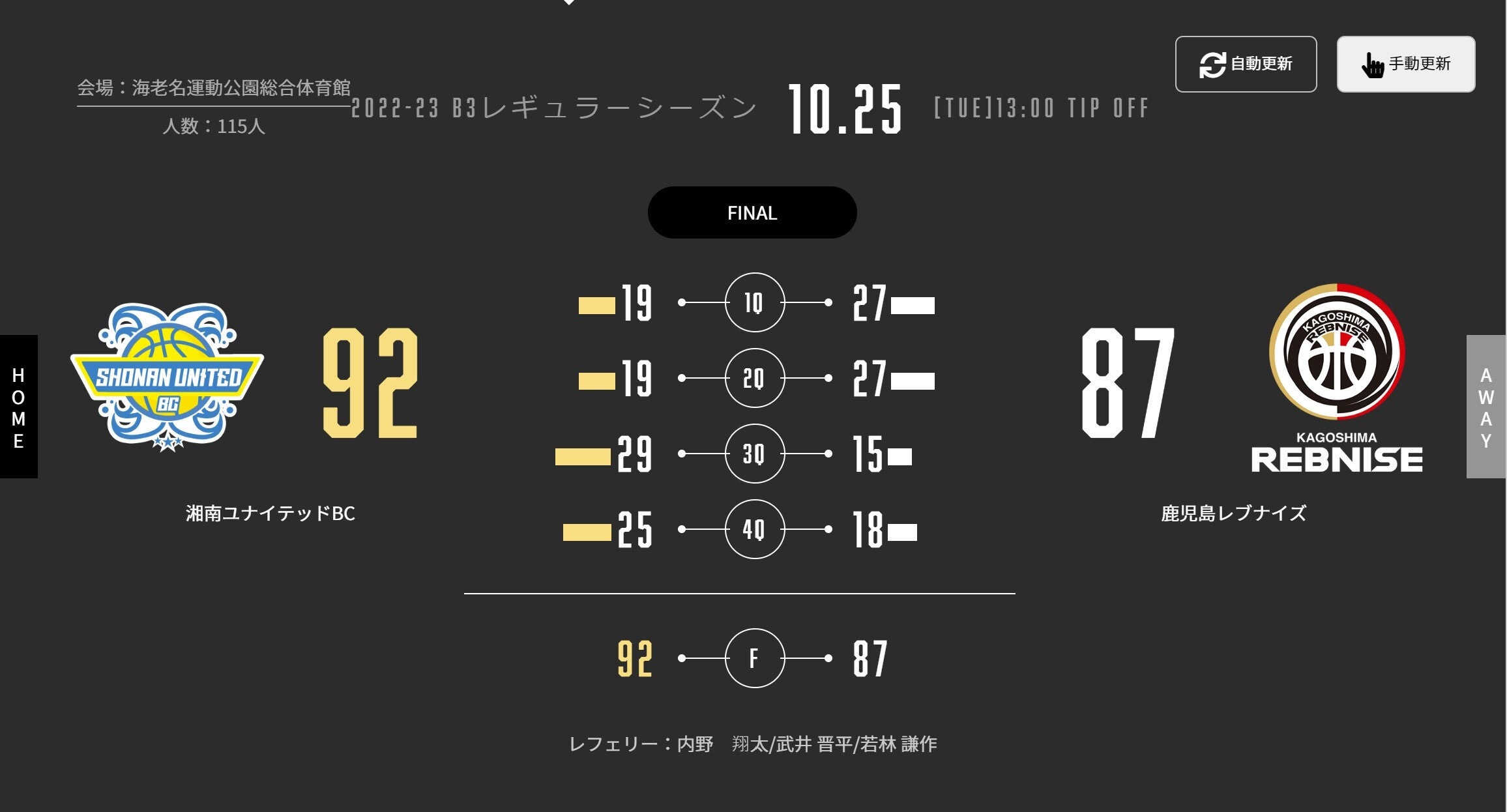 本日(10/25)、B3リーグ 2022-23シーズン 第4節 AYAW海老名運動公園体育館で湘南ユナイテッドBCと対戦しました。試合結果をお知らせします。